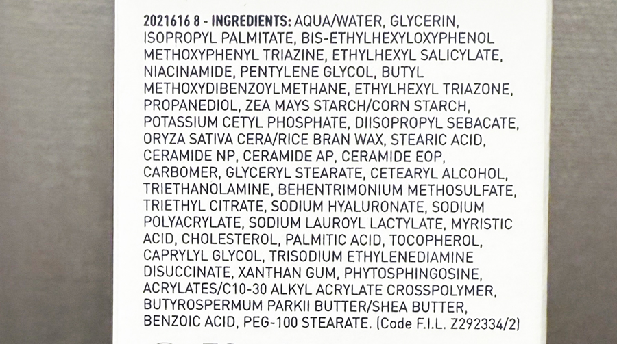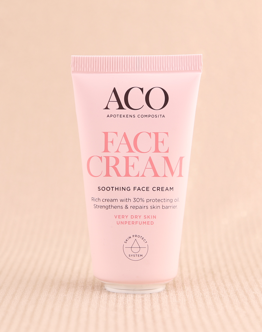 CeraVe'n kasvovoiteen koostumus on aivan erilainen kuin ACOn voiteen; ainesosia on yli 40 ja tämä voide sisältää erityisainesosia kuten kuivaa ihoa ravitsevia keramideja, suojakerrosta vahvistavaa niasiiniamidia sekä UV-säteilyltä suojaavia UV-suodattimia.