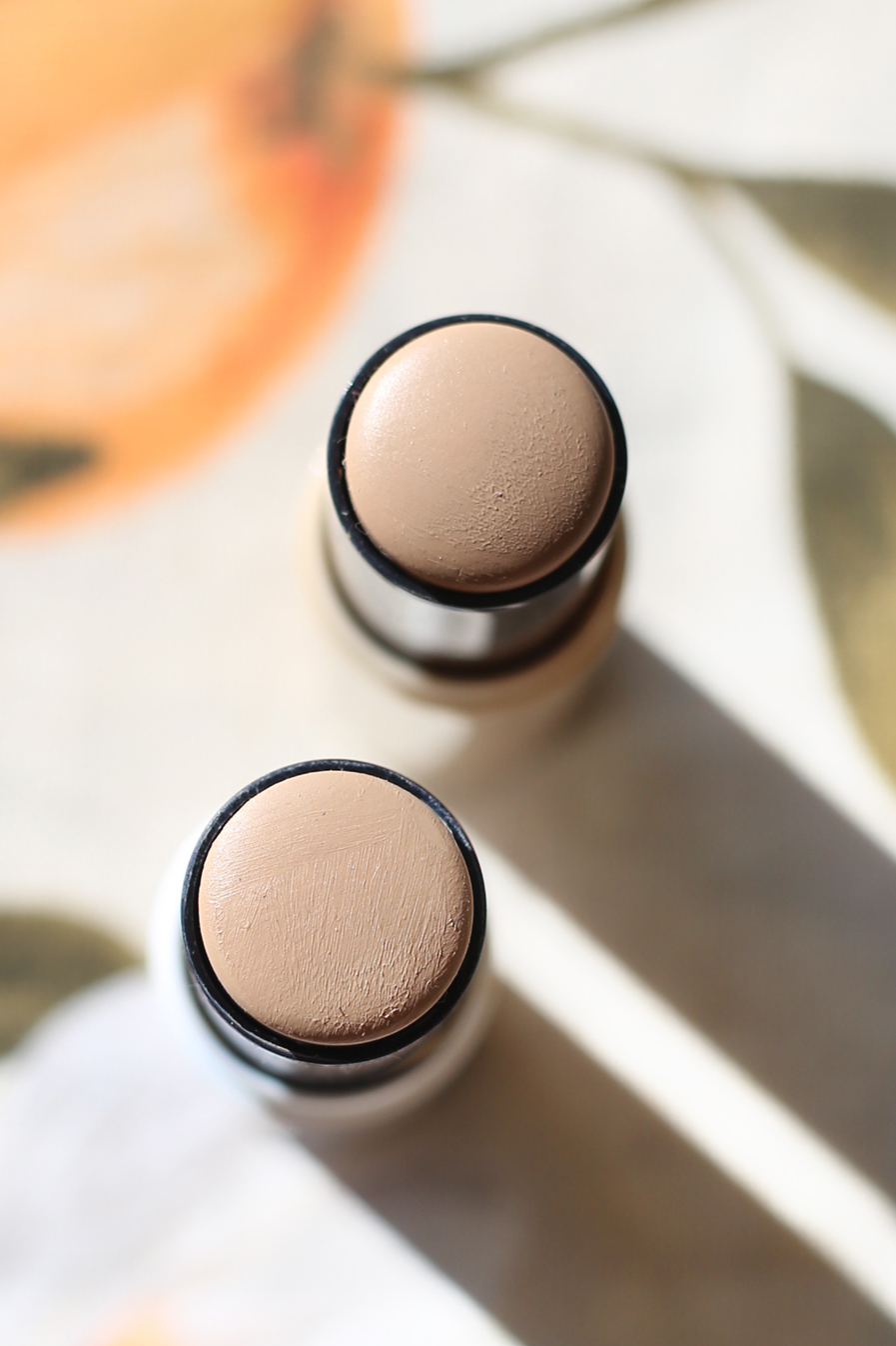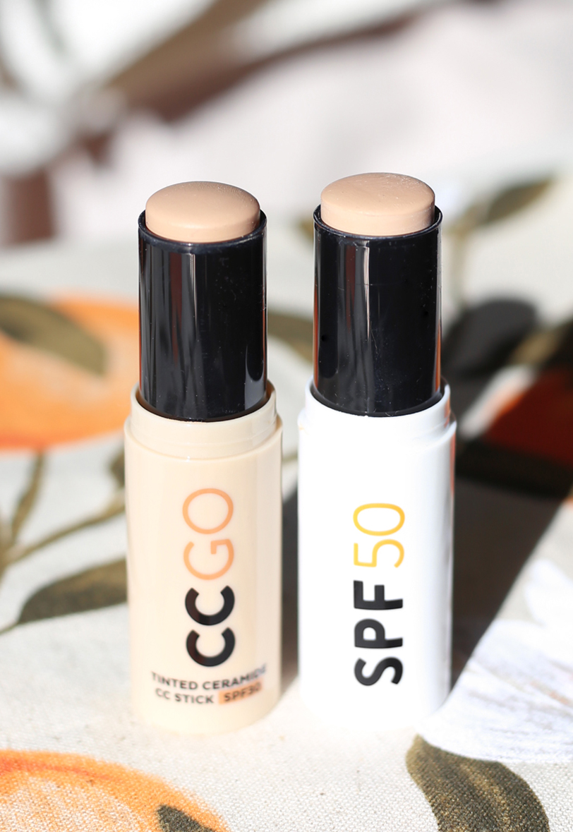 Sävyvalikoima tuo myös eron: SPF 50-puikosta on vain yksi sävy, CC-puikosta on 6 sävyä. Sain CC-puikosta testiin sävyn Sand 40, joka sattumalta on lähes yksi yhteen SPF 50-puikon ainoan sävyn kanssa. Ero iholla on se, että iho jää CC-puikolla kiiltävämmäksi. Odotin CC-puikon olevan peittävämpi, mutta ainakaan omalla ihollani en huomannut tässäkään eroa. Jälki on hyvin läpikuultavaa.