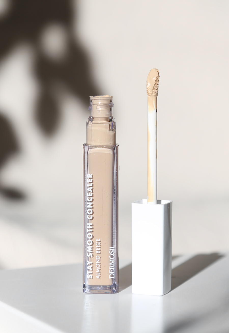 Huomio: Dermosilin Stay Smooth -peiteaineen vaalein sävy Soft Pink on ns. color correcting -peiteaine, eli siinä on tavallista peiteainetta enemmän pinkkiä pigmenttiä. Tuote on tarkoitettu erittäin vaalealle iholle peittämään silmänalustummuutta.