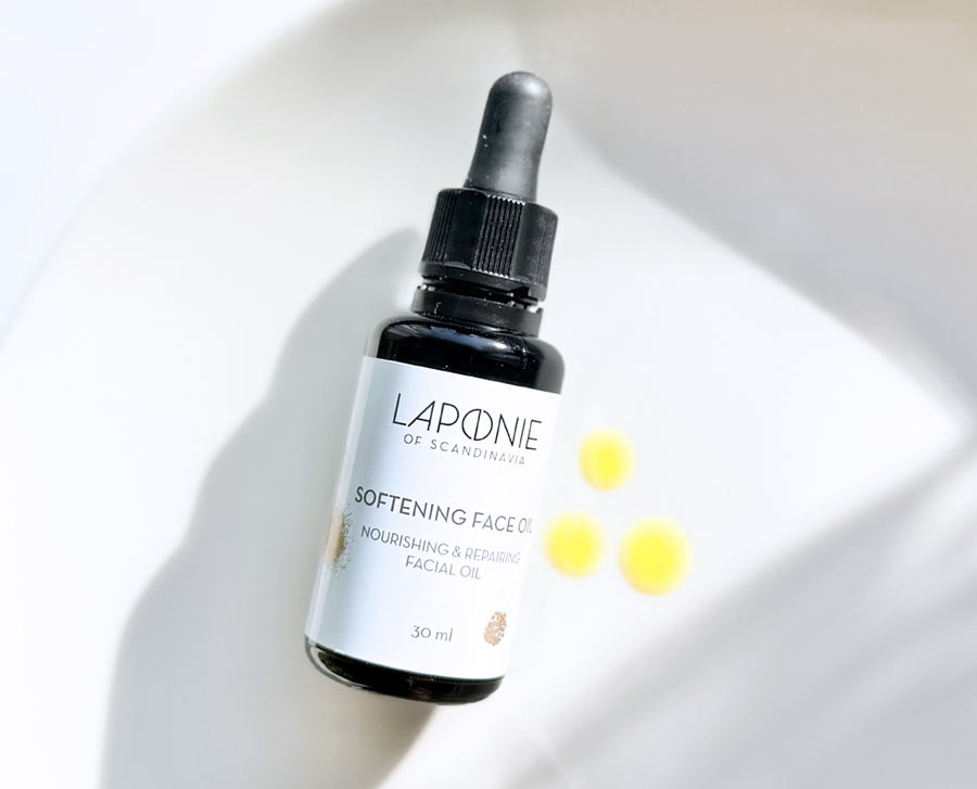 Softening Face Oil sisältää argan-, kaura-, ruusunmarja- ja vadelmansiemenöljyä. Öljyssä on aistittavissa kauran mieto, pehmeä tuoksu. Vaikka öljy näyttää "paperilla" yksinkertaiselta, sen kehitys vei Laponien perustajalta Kia Pentiltä melkein vuosikymmenen hänen etsiessään kaikkein parasta öljykomboa ultraherkälle iholle ja hioessaan valittujen öljyjen optimaalista suhdetta toisiinsa. Myös Kian laatustandardia vastaavien öljyjen löytyminen vei aikaa; kaikki saman kasvin öljyt eivät suinkaan ole samanlaatuisia. Kosmetiikkanörtin sydänalassa läikähtää tarina täydellisen tuotteen hiomisesta. 🥹