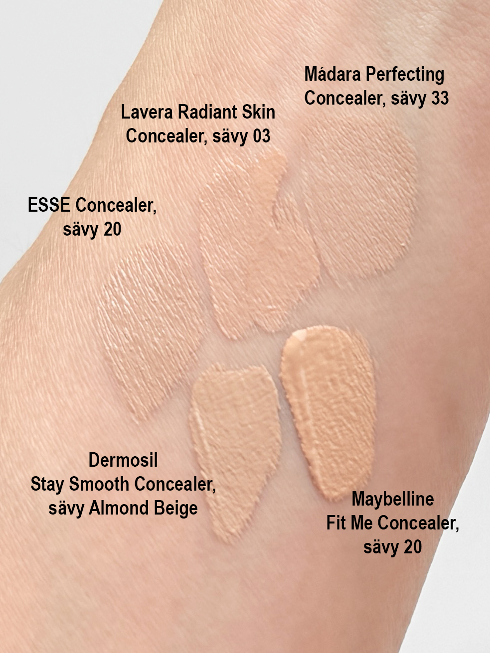 Tässä sävyjen vertailua eniten käyttämieni peiteaineiden välillä.