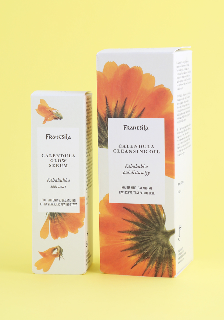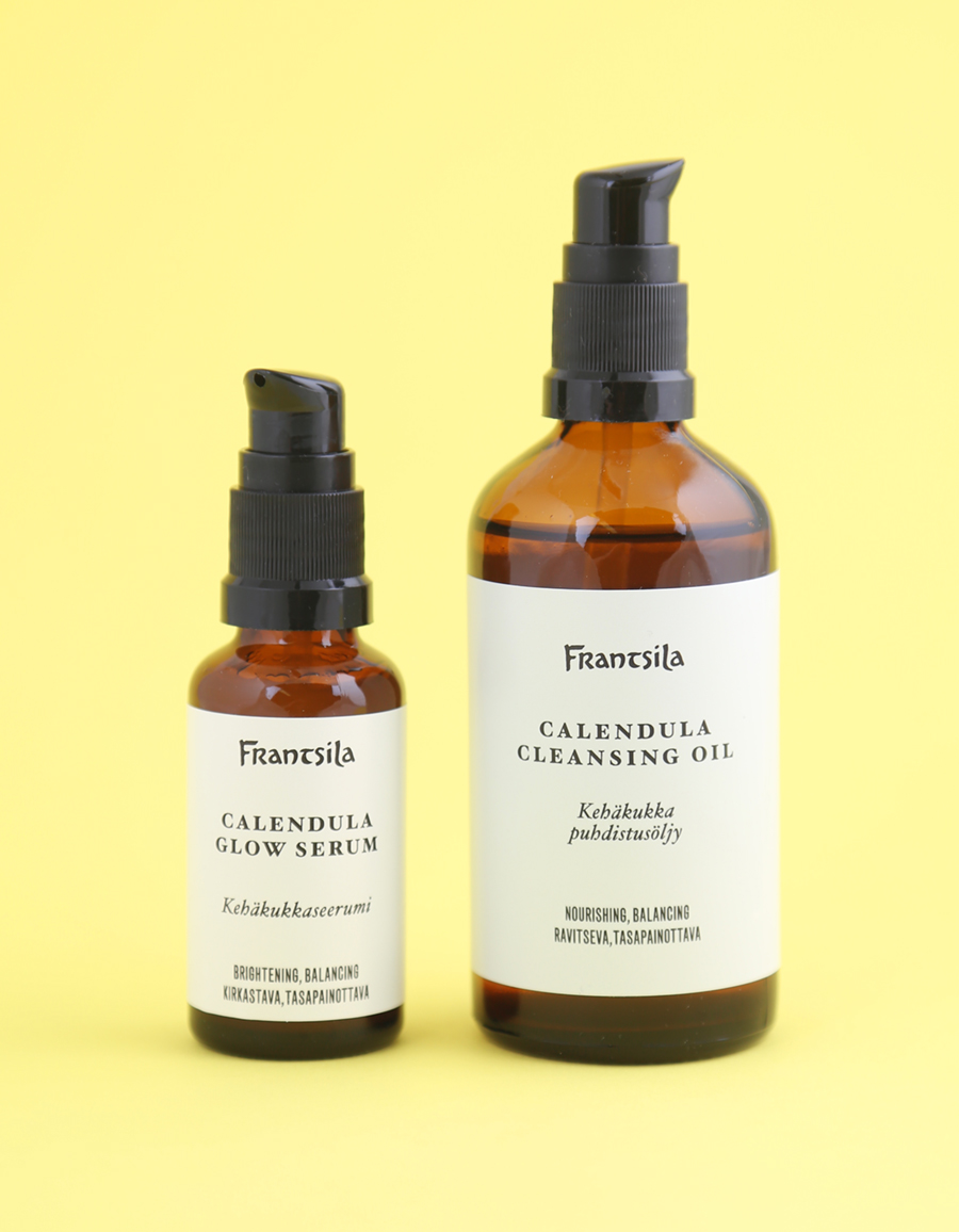 Esittelyssä Frantsilan tämän vuoden uutuuksia: kehäkukka-linjan Calendula Glow -seerumi ja Calendula -puhdistusöljy. Tuotteet olen ostanut itse.