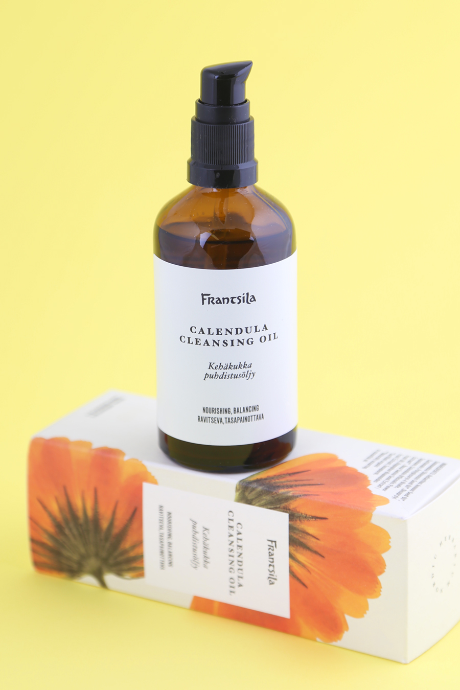 Mun iholla Frantsilan puhdistusöljy emulgoituu sekä huuhtoutuu erittäin hyvin, ja pidän myös sen lämpimän aromaattisesta tuoksusta. Tuoksu on aivan erilainen kuin seerumissa, ja myös erilainen kuin kehäkukka-sarjan muissa tuotteissa. Frantsila ei ole halunnut valita signature-tuotelinjaansa mitään tiettyä signature-tuoksua, ja sekin on minusta virkistävällä tavalla viehättävää. 🙂
