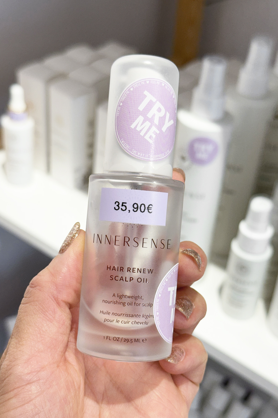 4. Viikkohoitoon Innersense Renew Scalp Oil (nyt -20% tarjouksessa) tai öljytön Innersense Renew Daily Active -hiuspohjan seerumi.