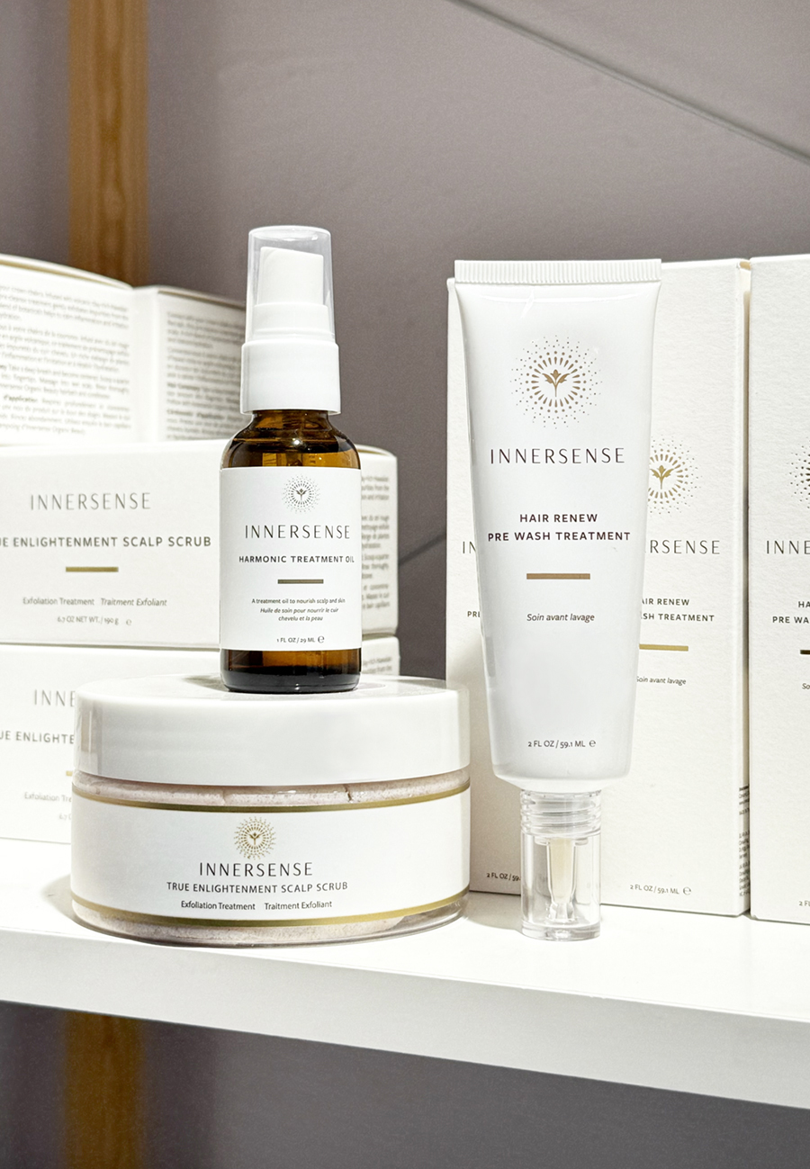 Tähän ehdottomasti avuksi Innersense Pre-Wash Treatment ja shampoo ehdottomasti myös tarkistukseen. Innersense Hydrating Cream Shampoo on kuivan ja oireilevan hiuspohjan valinta.