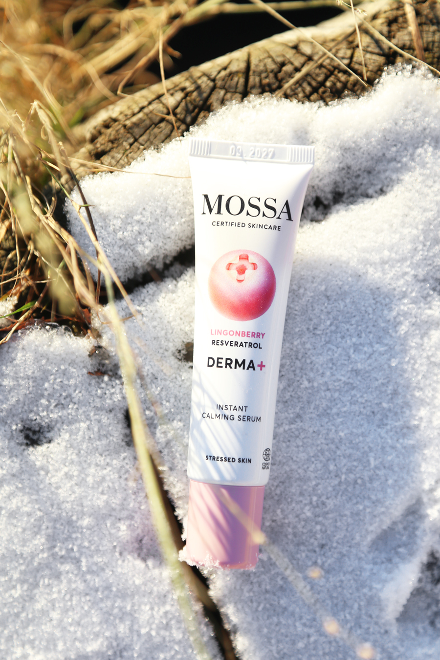 Derma+ -tuotteiden tähtiainesosa on rauhoittava, resveratrol-pitoinen puolukkauute. Resveratrol on anti-inflammatorinen eli tulehdusta rauhoittava aine, mutta sillä on toinenkin ominaisuus, josta kirjoitin lokakuussa antioksidantti-postauksessani: se hillitsee melaniinisynteesiä ja kirkastaa ihoa. ✨
