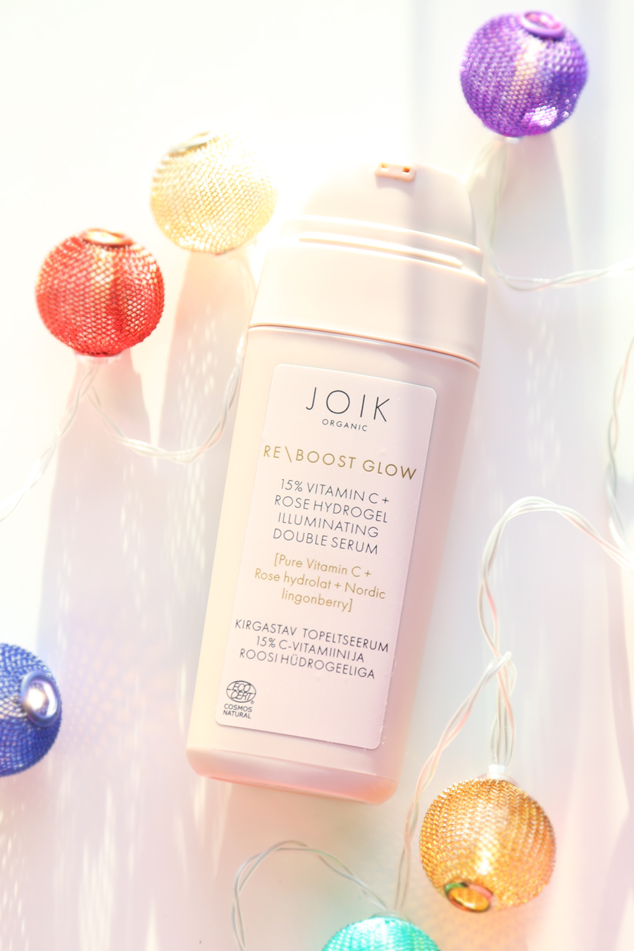 JOIKin upeassa kaksifaasisessa seerumissa on 15% puhdasta C-vitamiinia eli askorbiinihappoa, mikä tekee seerumista ensinnäkin todella tehokkaan mutta myös harvinaisen, sillä luonnonkosmetiikassa on hyvin vähän askorbiinihappo-tuotteita. Miksi? Koska askorbiinihappo on niin vaikea formuloida tuotteeseen siten, että se pysyy stabiilina, etenkin vettä sisältävässä tuotteessa. JOIK on ratkaissut tämän kaksifaasisuudella, eli aktiiviaineet on jaettu pullon sisällä omiin osioihinsa. Askorbiinihappo yhdistyy vesifaasin kanssa vasta siinä vaiheessa, kun annostelet seerumia ihollesi.