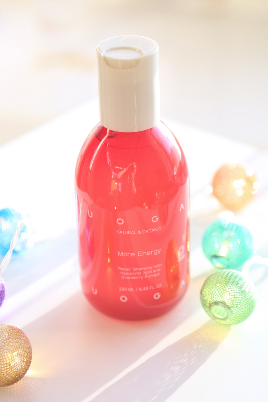 Pääsin viimein tutustumaan myös Uoga Uogan hiustuotteisiin. Sulfaatiton More Energy -shampoo on tarkoitettu kuiville, vaurioituneille ja käsitellyille hiuksille ja sisältää mm. vehnäproteiinia, arganöljyä, aloe veraa ja hyaluronihappoa.