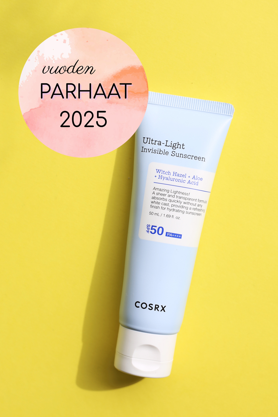 Listan ensimmäinen ei-luonnonkosmetiikan tuote! COSRX jatkaa nerokkaiden korealaisten kasvoaurinkovoiteiden kunniakasta rivistöä ja hurmaa upean koostumuksensa ohella myös alhaisella hinnallaan, joka on K-Beauty-aurinkosuosikkieni joukossa edullisin (alle 17€).
