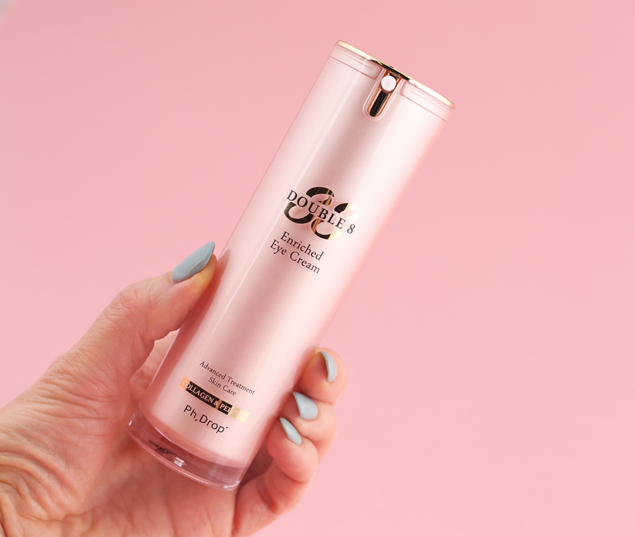 Double8 todellakin tuo tämän tunteen. Uskoisin Double8-voiteen olevan monelle hoitavuutensa puolesta yö-silmänympärysvoide, mutta itse käytän tätä aamuin illoin. Vaikka voide on runsasta, se sopii ihollani oikein hyvin meikin (käytännössä peiteaineen) alle. Levitän silmänympärysiholle aina peiteainetta, koska silmänaluseni ovat kroonisesti tummat.