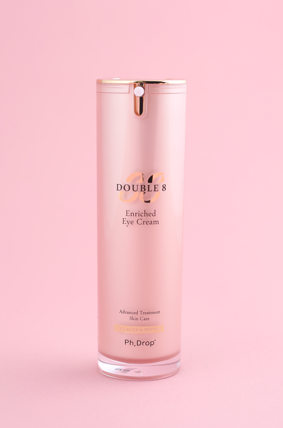 Double8-silmänympärysvoiteen vaikuttavat aineet painottuvat niasiiniamidiin, kosteutta sitoviin kollageeniyhdisteisiin sekä kiinteyttäviin peptidiyhdisteisiin. Peptidejä on mukana jopa kahdeksan erilaista. Koostumuksessa on myös niasiiniamidia, keramideja, hyaluronihappoa ja granaattiomenan uutetta.