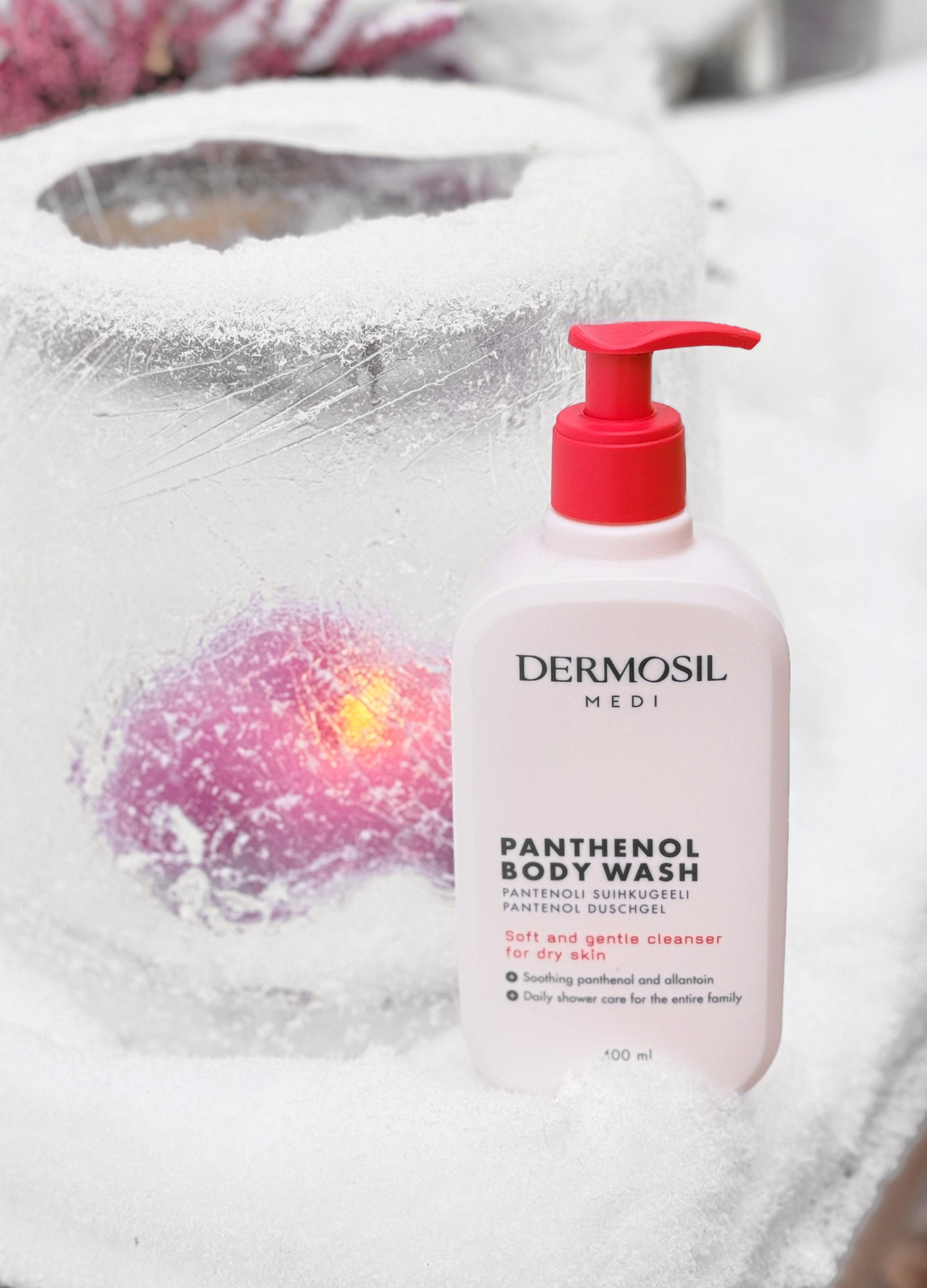 *Dermosilin Panthenol Body Wash on rauhoittava, kosteuttava ja ihanan pehmeästi vaniljan tuoksuinen. Se sisältää pantenolia, glyserolia ja allantoiinia. Käytän tätä myös käsisaippuana, se on niin mieto ja ei-kuivattava.