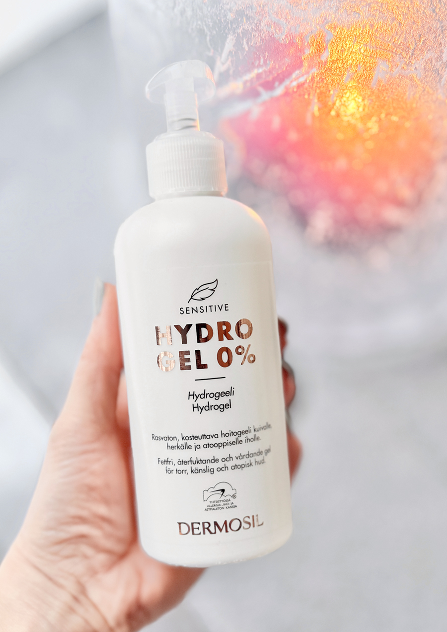 *Dermosilin Hydrogeelista on muodostunut oman vartalonihonhoitoni kulmakivi. Käytän sitä niin käsien kuin vartalon ihon kosteutukseen ympäri vuoden. Se sisältää runsaasti kosteutta sitovaa glyserolia, kaverinaan rauhoittava duo bisabololia ja allantoiinia.