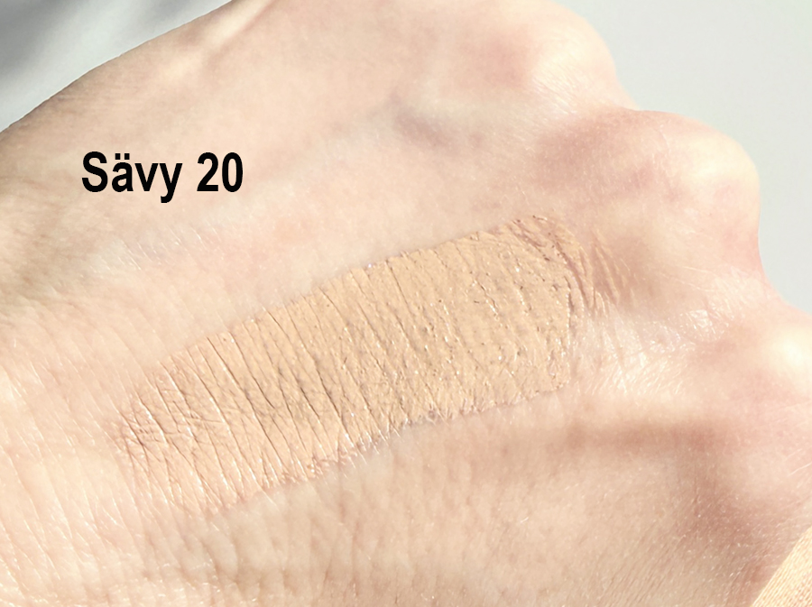 Essen peiteaine on ilokseni sellainen. Sävyjä on kolme, joista keskimmäinen, sävy 20, on minun iholleni täydellinen. Sävyistä on hyvät swatchit Twistben sivulla.