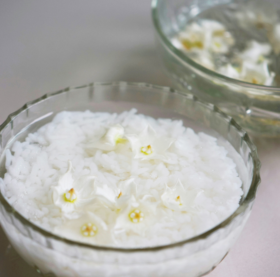 Minulle jäi tuosta tilaisuudesta myös vahvasti mieleen Yokotan lapsuusmuisto. Yokotan isoäidin iho oli poikkeuksellisen hyväkuntoinen ikäisekseen, ja hänen tapoihinsa kuului pestä kasvojaan riisinhuuhtelusta ylijääneellä riisivedellä. Isoäidin ihonhoitorutiini toi Yokotalle oivalluksen, että luonnon aineet eivät ravitse vain kehoamme, vaan ne voivat ravita myös ihoamme. Riisivedestä jäi Yokotalle myös ahaa-oivallus liittyen nestemäiseen ihonhoitoon. Mekin jo länsimaissa tiedämme, kuinka tärkeässä asemassa nimenomaan nestemäinen ihonhoito monissa Aasian maissa on - ja riisivesikin on muuten nykyään modernissakin kosmetiikassa tunnistettu aktiiviaine. :)